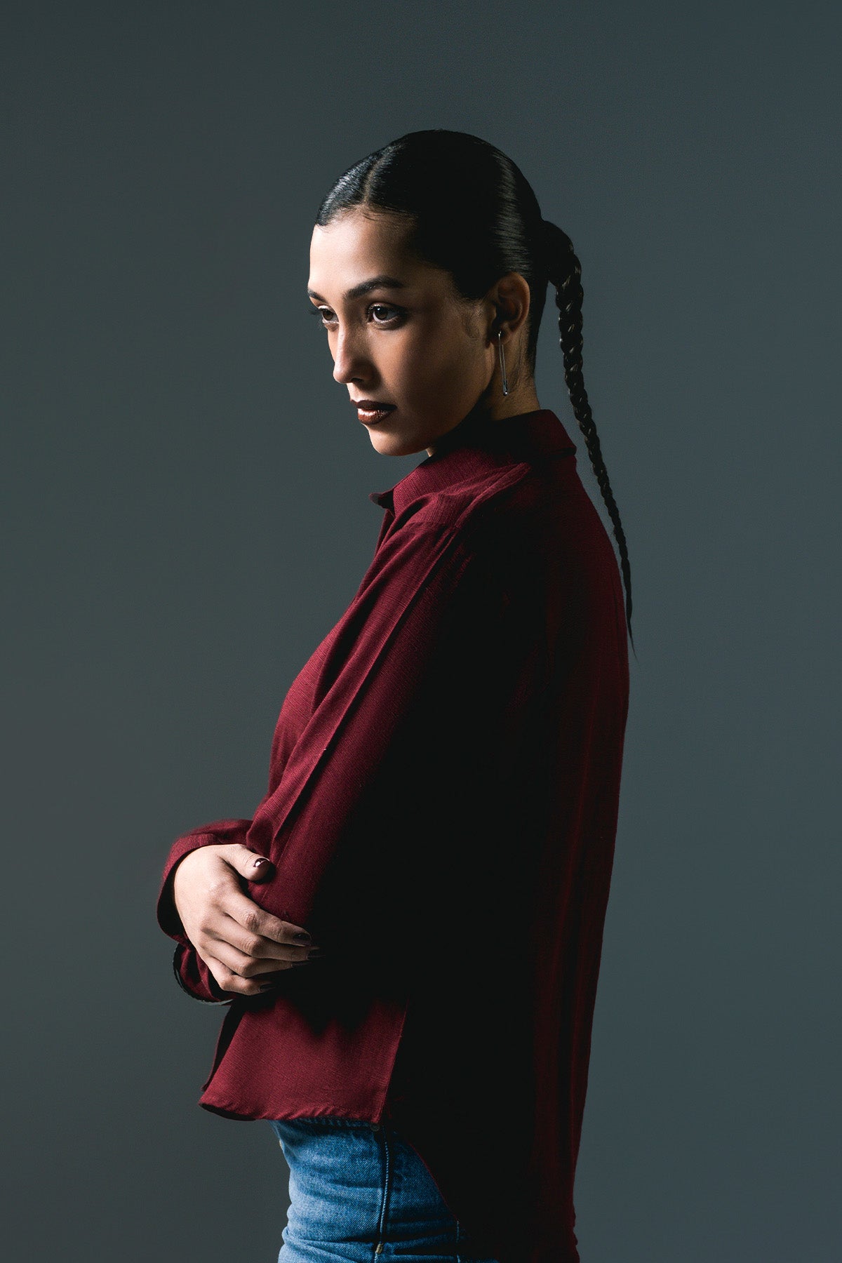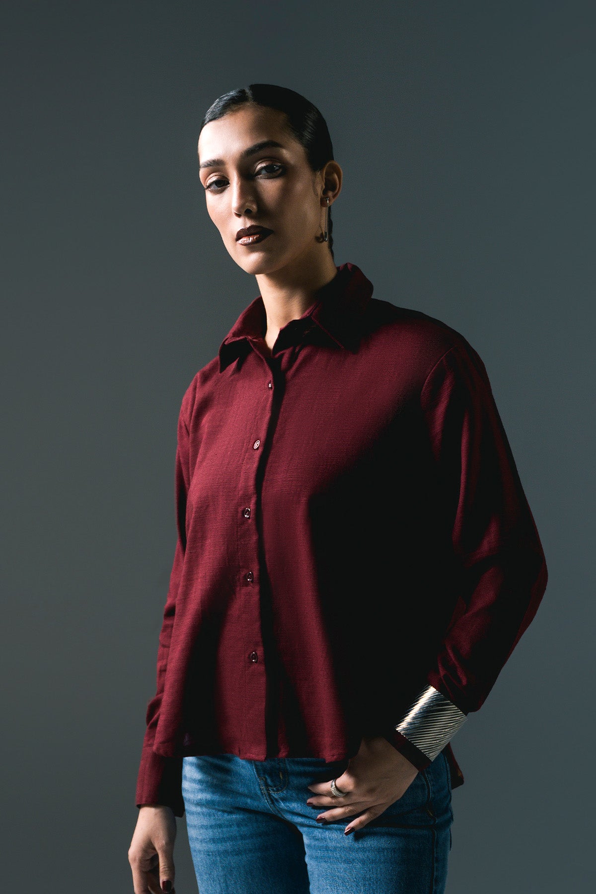 Stay stylish and cozy with this women’s maroon khaddar button-down shirt. Crafted from soft, breathable khaddar fabric, it offers a comfortable fit ideal for daily wear. The classic button-down design ensures a timeless, versatile look that pairs effortlessly with trousers, jeans, or skirts. Perfect for casual outings or smart-casual ensembles.