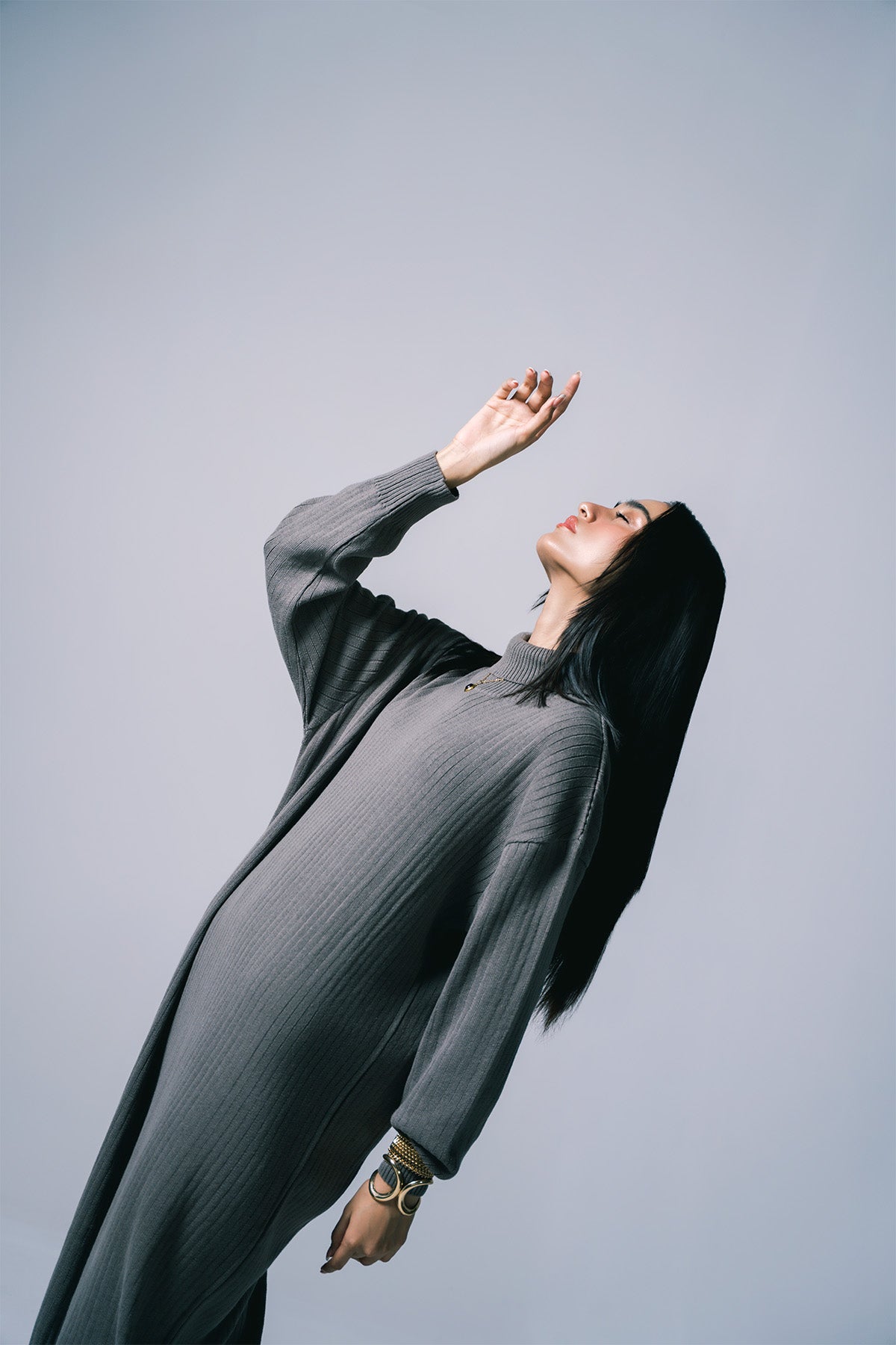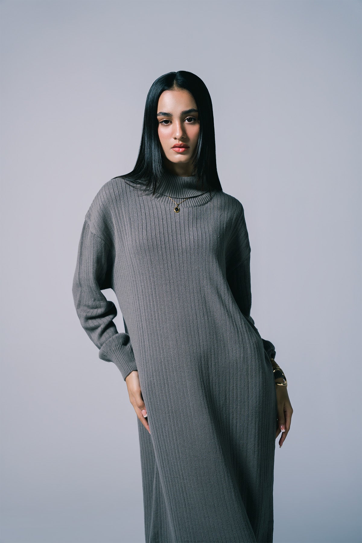 Stay cozy and chic with this long sweater knit dress featuring a high neck design. Crafted from soft, stretchable fabric, it drapes elegantly for a flattering fit while keeping you warm. The long length and minimalist silhouette make it perfect for layering or wearing on its own for a relaxed yet polished look. Ideal for casual outings, work-from-home comfort, or stylish winter wear.