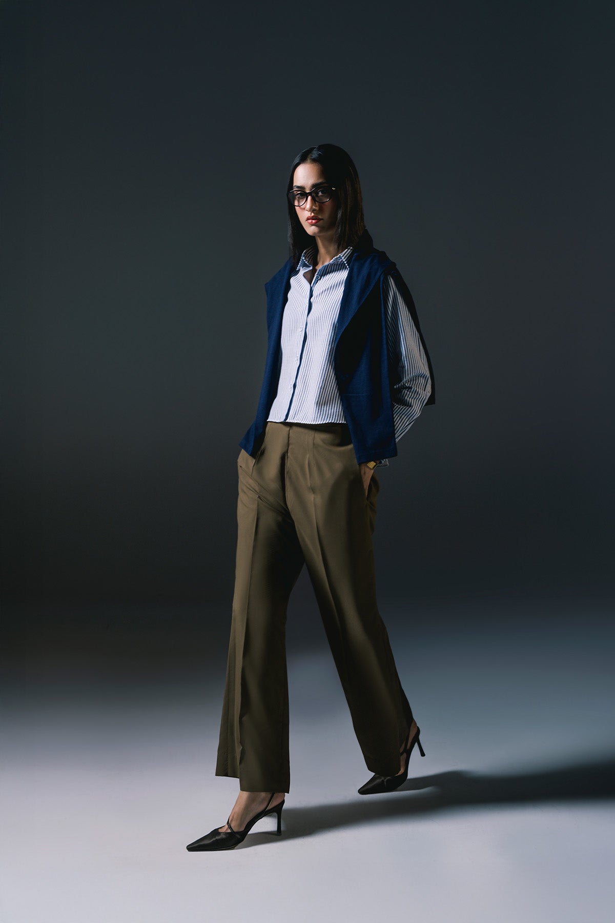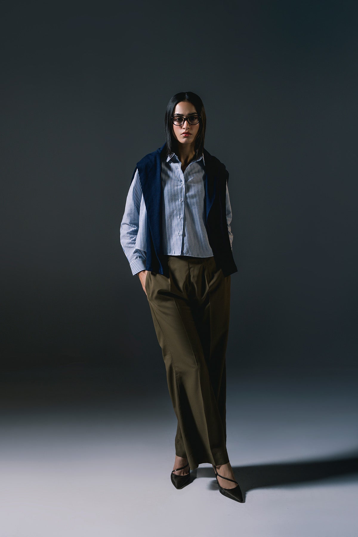 Make a stylish statement with this broad blue and white striped button-down shirt featuring a slightly cropped length. Crafted from soft, breathable fabric, it offers a crisp, fresh look with a modern twist. The structured collar and clean button front keep the silhouette classic, while the shorter length adds a youthful edge. Perfect for pairing with high-waisted jeans, trousers, or skirts for effortless everyday styling.